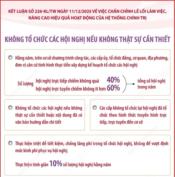 Ngày 11 tháng 12 năm 2025, Ban Bí thư đã ban hành Kết luận 226-KL/TW năm 2025 về việc chấn chỉnh lề lối làm việc, nâng cao hiệu quả hoạt động của hệ thống chính trị.