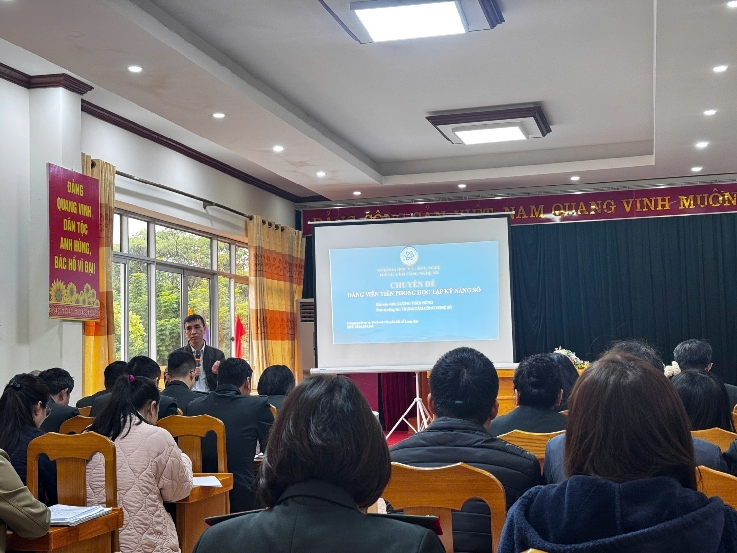 Tại Hội nghị, báo cáo viên đã quán triệt những chủ trương, định hướng lớn của Đảng và Nhà nước về chuyển đổi số; làm rõ vai trò, ý nghĩa của kỹ năng số trong thời kỳ cách mạng công nghiệp 4.0, nhất là đối với đội ngũ cán bộ, đảng viên – những người tiên phong trong học tập, rèn luyện, ứng dụng công nghệ phục vụ công tác chuyên môn và phục vụ Nhân dân.