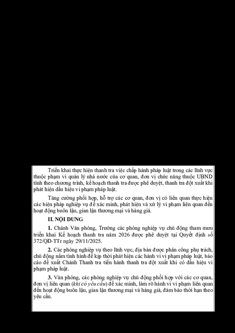 | Loại văn bản | Kế hoạch | Người ký | Phó Chánh Thanh tra tỉnh - đ/c Hoàng Thanh Đạm |