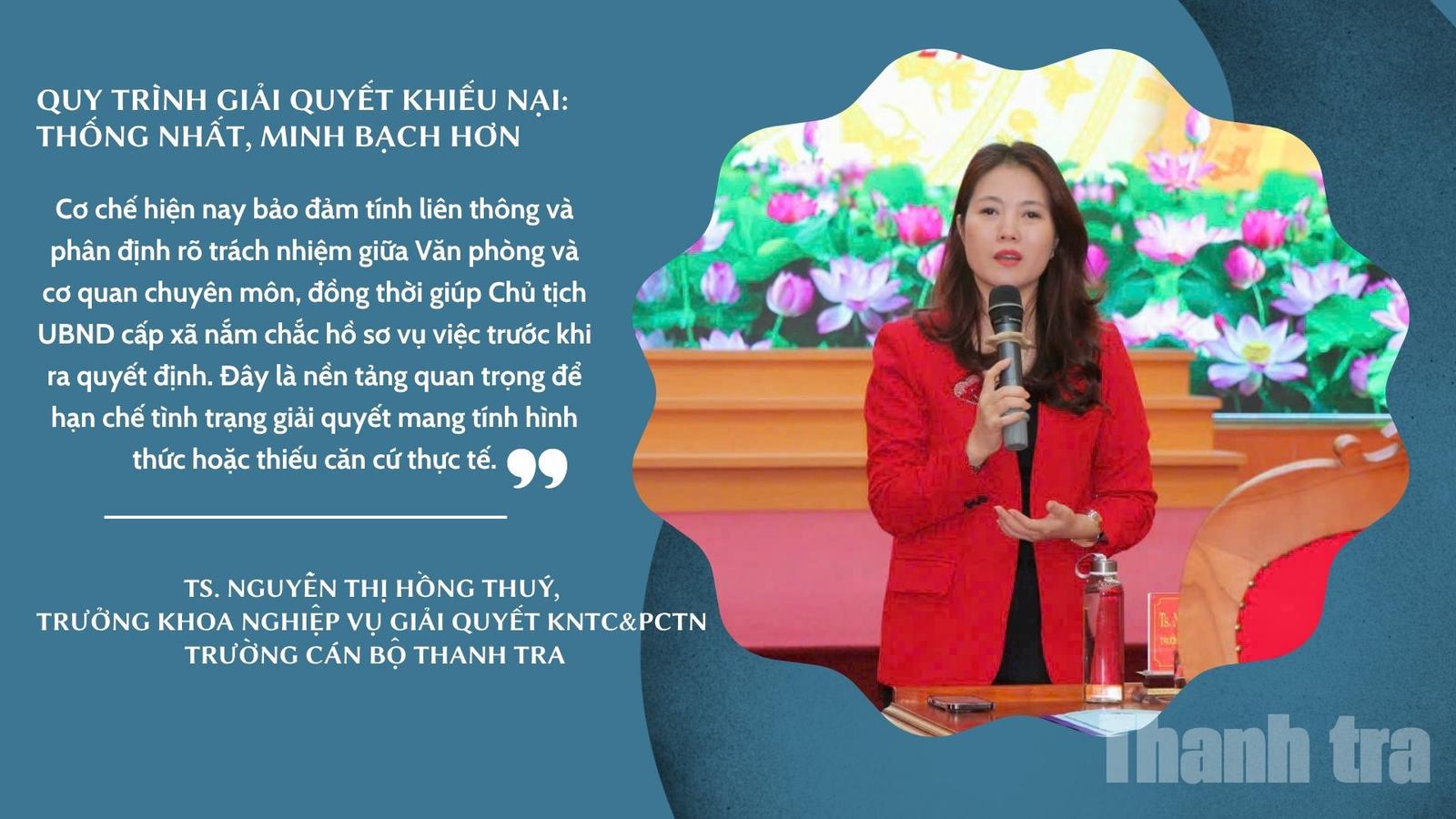 “Cơ chế này bảo đảm tính liên thông và phân định rõ trách nhiệm giữa Văn phòng và cơ quan chuyên môn, đồng thời giúp Chủ tịch UBND cấp xã nắm chắc hồ sơ vụ việc trước khi ra quyết định. Đây là nền tảng quan trọng để hạn chế tình trạng giải quyết mang tính hình thức hoặc thiếu căn cứ thực tế”, TS. Nguyễn Thị Hồng Thuý nhận định.