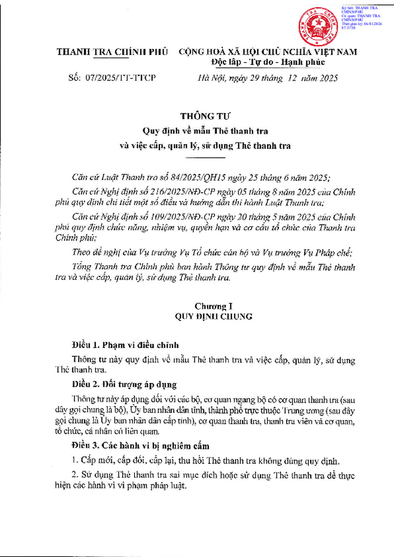 | Số hiệu | 07/2025/TT-TTCP | Cơ quan ban hành | Thanh tra Chính phủ |